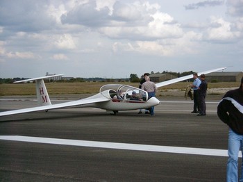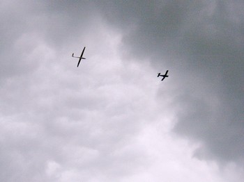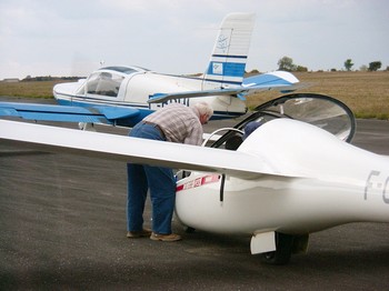 Une situation de marge dépressionnaire nous a permis de voler pendant une bonne partie de l'après-midi avec, aux manettes du remorqueur (MS-893 Commodore) François "Doudou" VIRLY et aux commandes du planeur (DG-500) Christophe "MARCO".L'initiation fut malheureusement écourtée par l'arrivée d'un front pluvieux qui obligea à interrompre les vols.