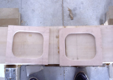 détail de réalisation des diaphragmes. Il s'agit d'une plaque de contreplaqué (epaisseur 12 à 15 mm), évidé en son centre, pour l'alléger et lui donner de la souplesse. |