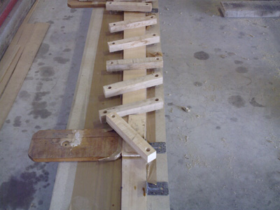 détail du collage du centre de la semelle supérieure. Elle rassemble trois planches.