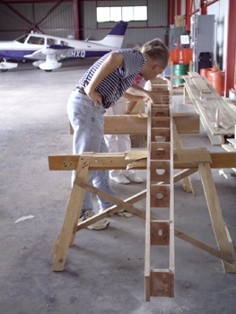 vue d'ensemble du longeron, avant la pose des "âmes" qui en consstituent les flancs.