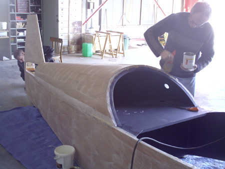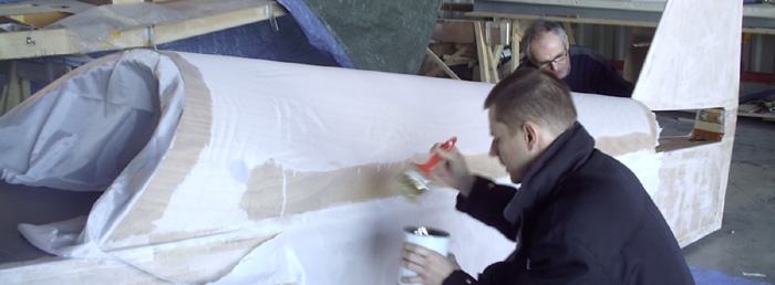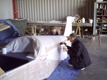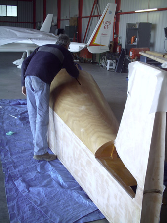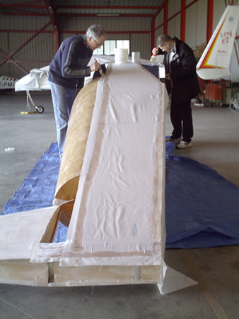 le bois, puis la toile (Dacron 1500 kg) est posée. Tout