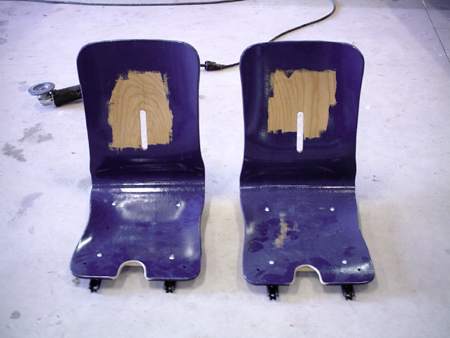 Les deux sièges... allégés et retaillés, avant de recevoir leurs (fins) coussins.